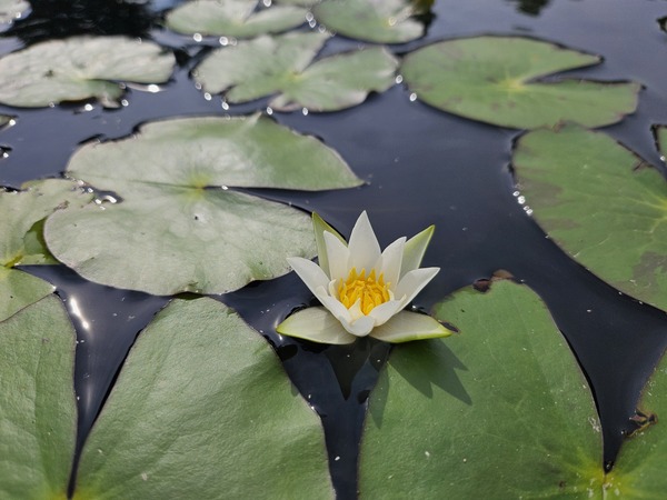 꼬마수련은 꽃의 암술머리가 노란색, 꽃받침이 사각형이며 그 크기가 약 4cm로 매우 작다.