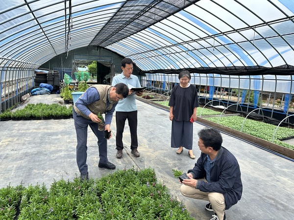 ▲ 지역상생 계약재배 농가 대상 국립백두대간수목원 직원이 재배기술 지도를 하고 있다.한국수목원정원관리원이 지역 농가의 소득 창출 활성화를 위해 힘쓰고 있다.