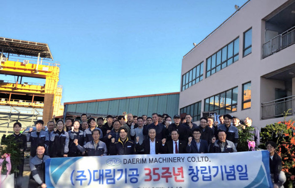 ㈜대림기공(대표이사 회장 하필호)은 11월10일 부산 녹산 국가산업단지에 위치한 본사에서 하필호 대표, 허덕용 사장 등과 임직원이 참석한 가운데 창립 35주년 기념식을 개최했다. 이날 기념식에서는 표창장과 24k로 제작된 회사로고가 새겨진 배지(badge)가 부상으로 수여됐다.