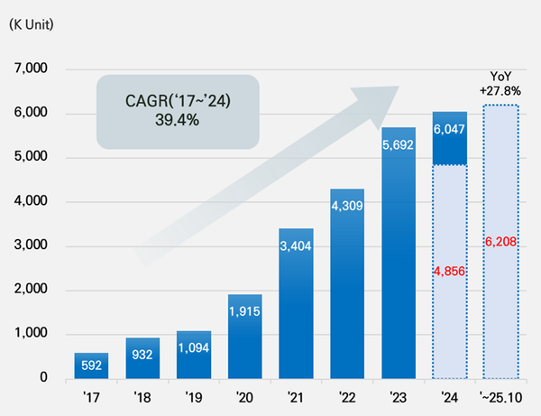 기타 지역(중동, 남미, 오세아니아 등)은 전년대비 45.8% 증가한 32.8만대를 기록하며 시장의 5.3%를 차지했다. 해당 지역들은 전기차 시장 확산이 초기 단계에 머물러 있으며, 국가별 정책 지원과 인프라 구축 수준의 격차가 여전히 크다.