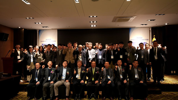▲ 한국탄소나노산업협회와 한국탄소나노복합재연구조합 정기총회 참석자들이 기념촬영에 응하고 있다.