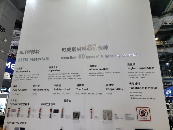 BLT도 티타늄, 초고온 합금, 알루미늄 등 80가지 이상 분말소재를 자체 생산해 부품을 적층하는데 사용하고 있는데 각 소재를 사용해 실제 적층한 항공우주, 폴더블폰, 열교환기 등 부품을 함께 전시함으로써 기술력을 과시했다.