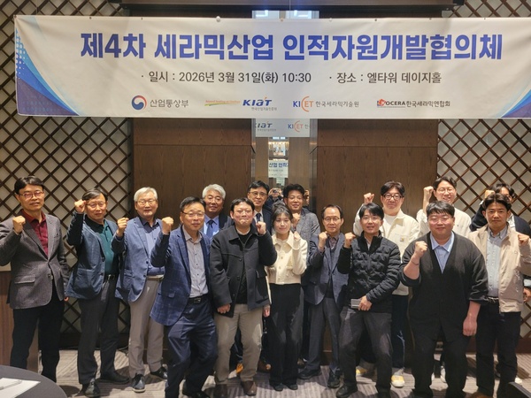 한국세라믹기술원과 한국세라믹연합회는 31일 서울 서초구 엘타워에서 ‘제4차 세라믹산업 인적자원개발협의체’ 회의를 개최했다. 이번 회의에는 한국세라믹기술원, 한국세라믹연합회, 미코, 신한세라믹, 삼화콘덴서, 한국내화, 케이씨, 동국대, 한국파인세라믹스협회 등 산학연관 관계자 20여명이 참석했다.