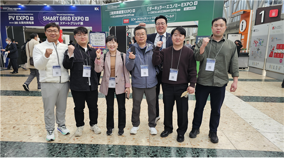 ▲ 필자(左 첫 번째)를 비롯해 정선군, 인제군, 고성군청 관계자들이 ‘스마트 에너지 위크 2026’을 참관하기 위해 도쿄 빅사이트 전시장을 방문했다.