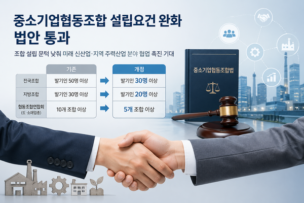 중소기업협동조합 설립 문턱이 낮아지면서 신산업과 지역 중소기업의 협업 기반 확대와 산업 생태계 경쟁력 강화가 기대된다.